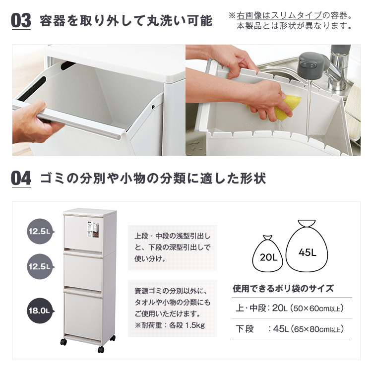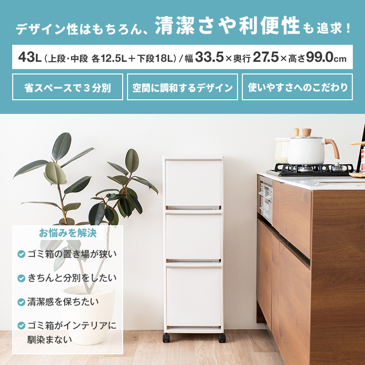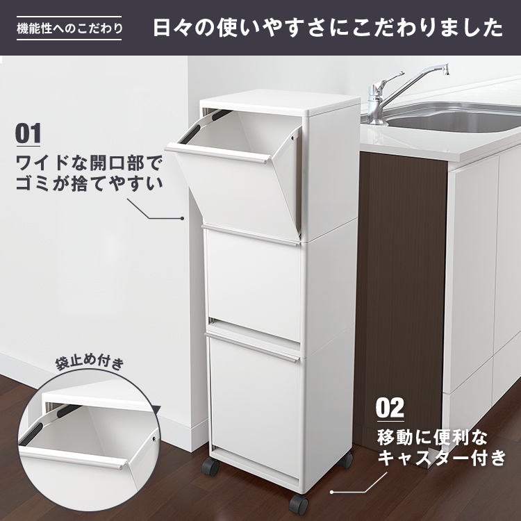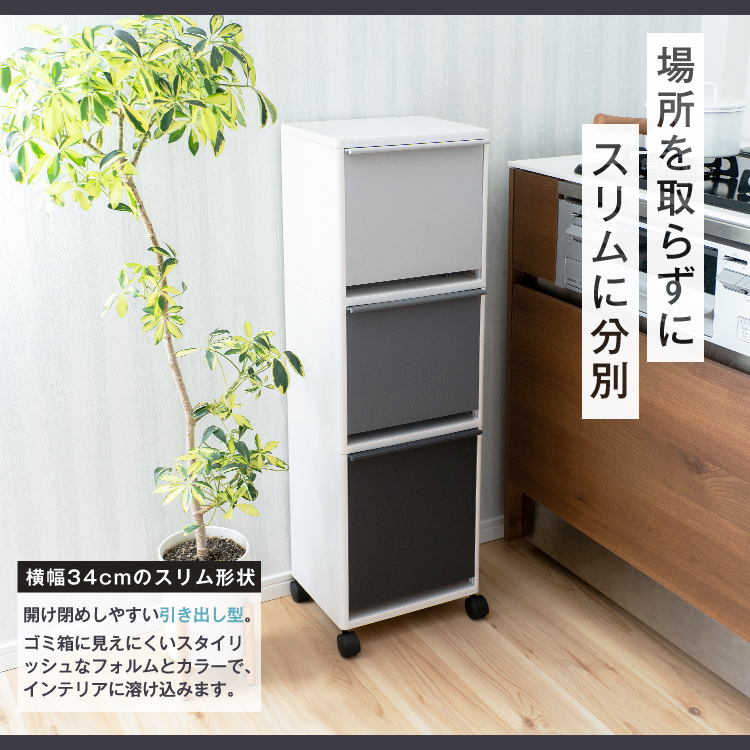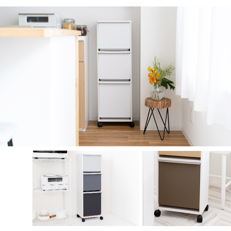異動に便利なキャスター付きでお掃除もラクラク♪場所を取らない3段式タイプのゴミ箱です。