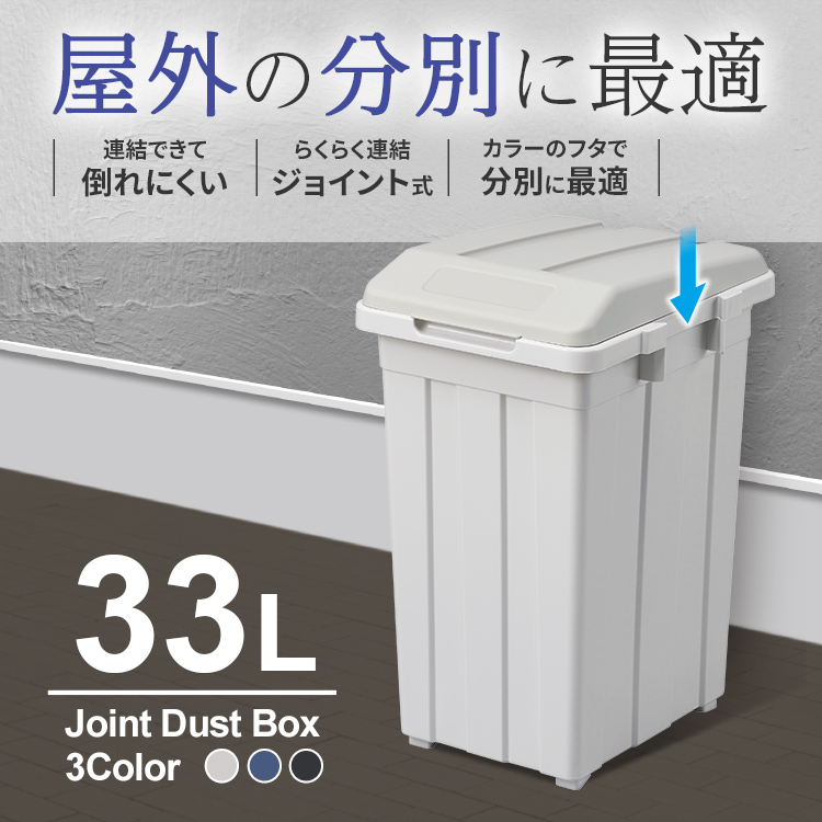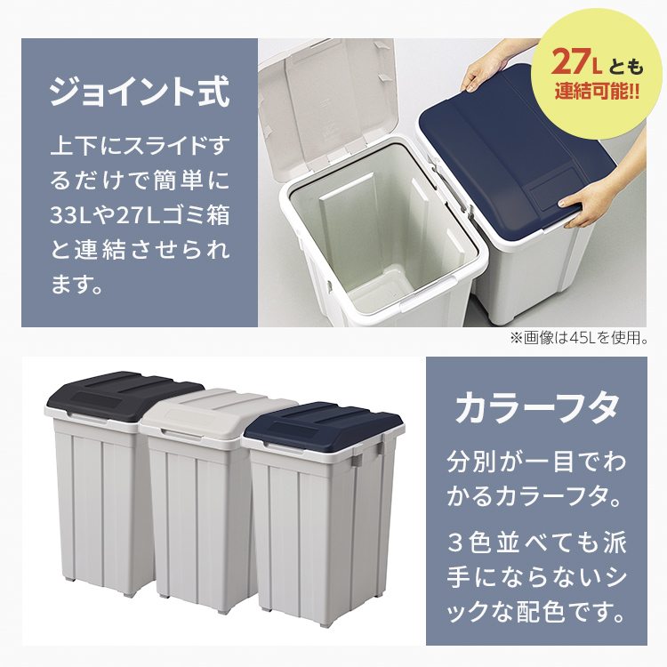 フタカラーで分別できるゴミ分別に最適なゴミ箱です。連結できるので、大雨や強風が来ても転倒の心配がありません。