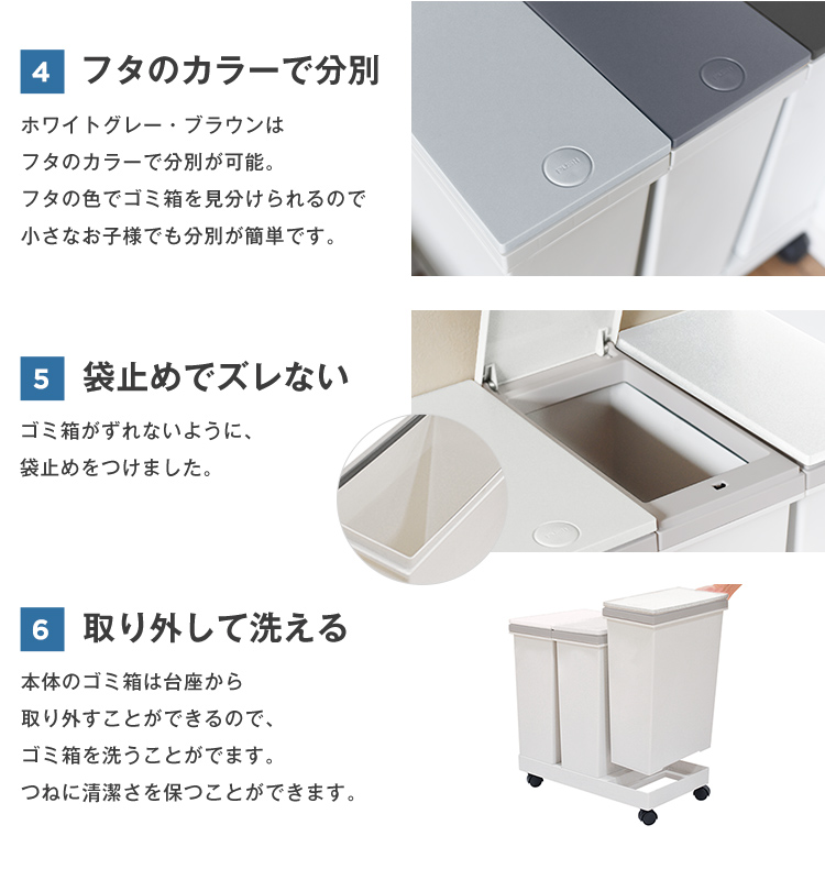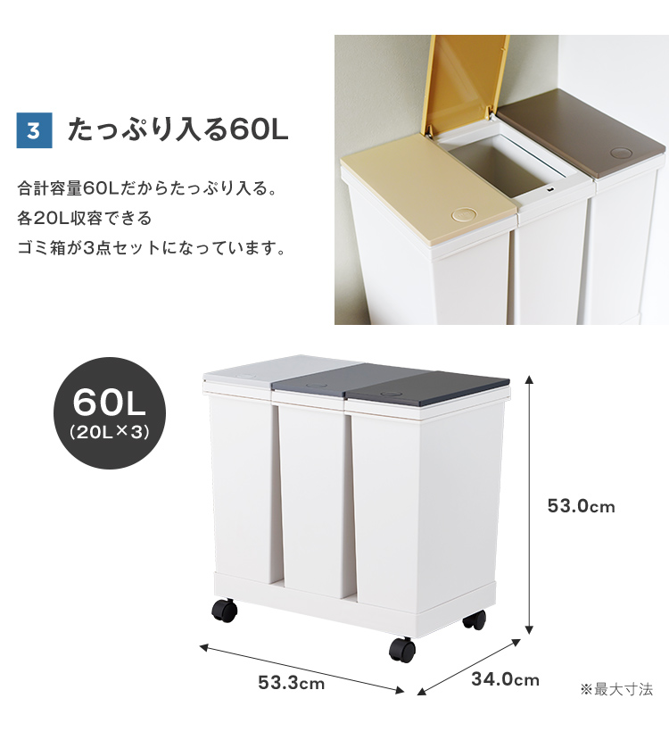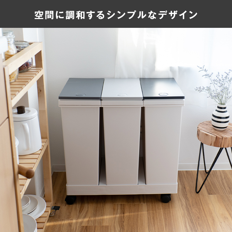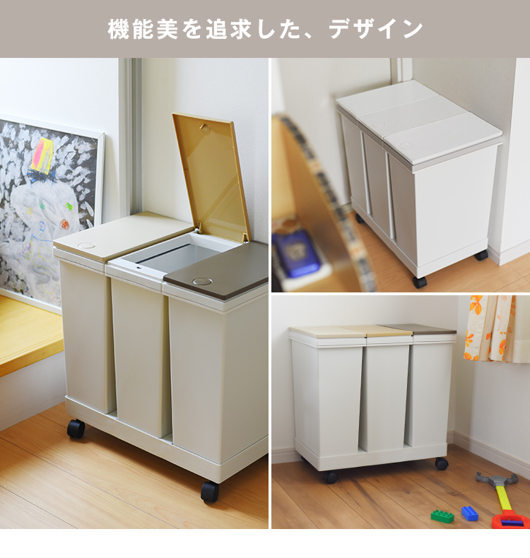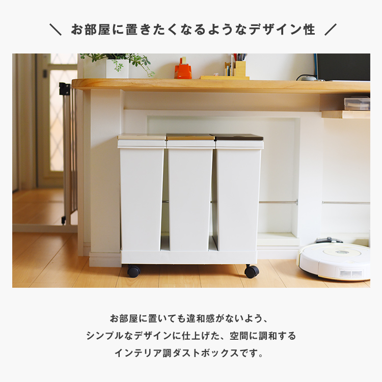 3連結タイプで分別に最適!キャスター付き台車で移動できるのでお掃除の邪魔にならないダストボックスです。
