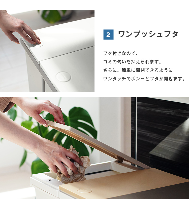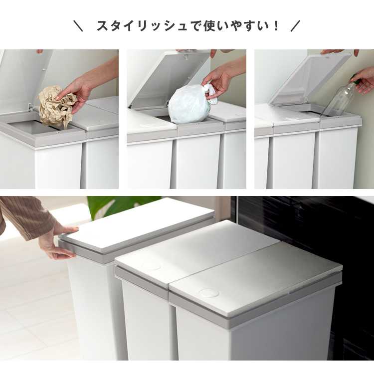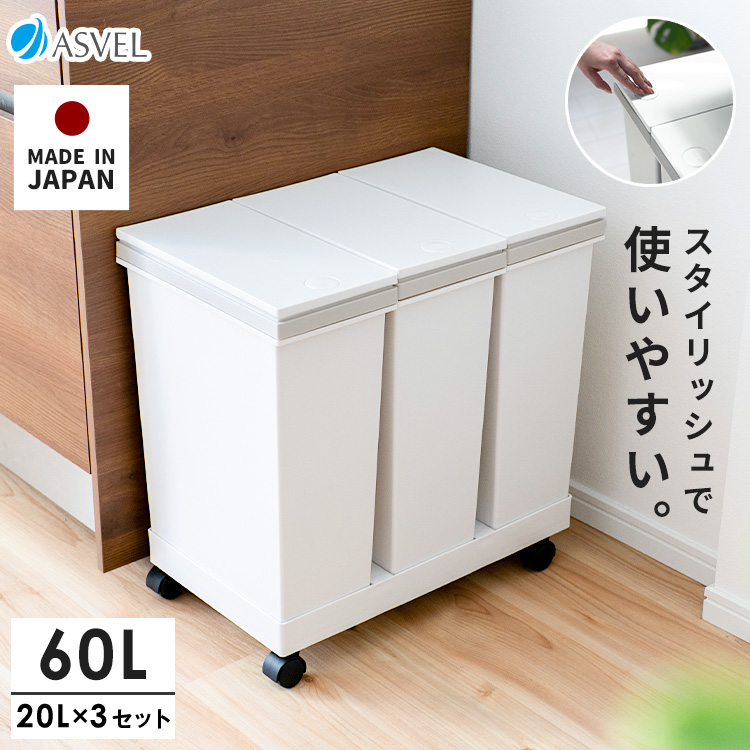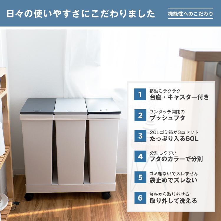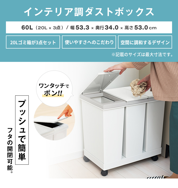 指1本で開けられるワンプッシュタイプゴミ箱20L×3分別。