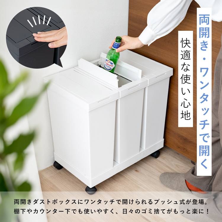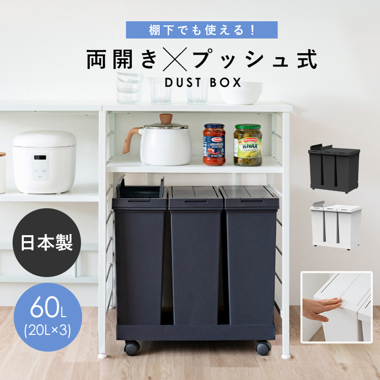 - 棚下で使えるプッシュ3分別ワゴン