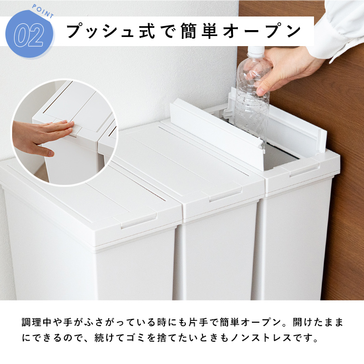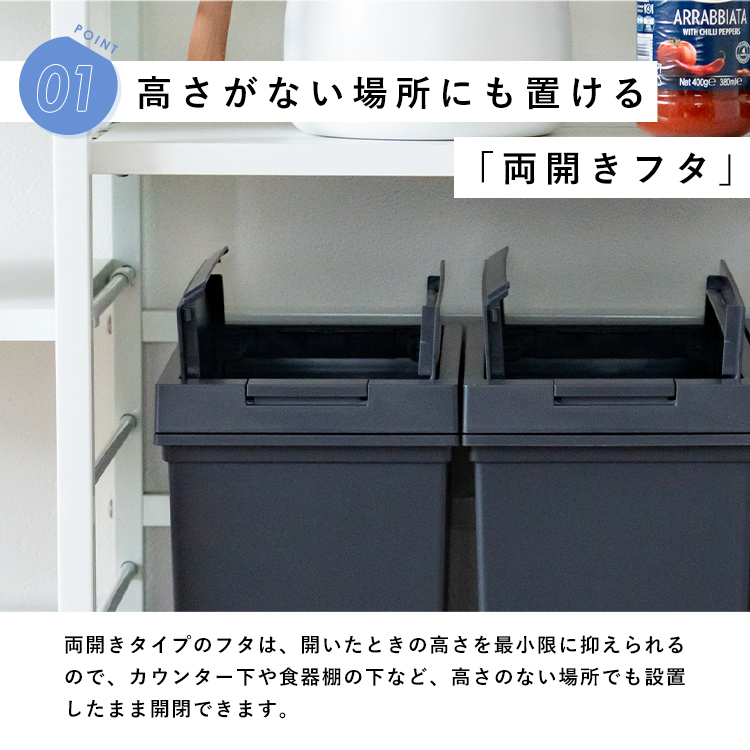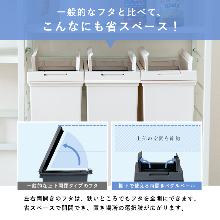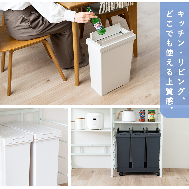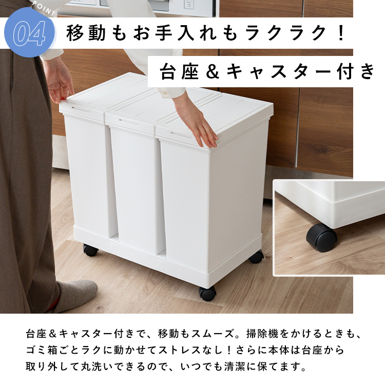 - 本体・袋止め・台座=ポリプロピレン、フタ・フタ枠・ロックレバー=ABS樹脂、ロック軸・固定リング・リンクバー=ポリアセタール、フタ用バネ・レバー用バネ=ステンレス鋼、キャスター=ポリプロピレン/ナイロン/鉄