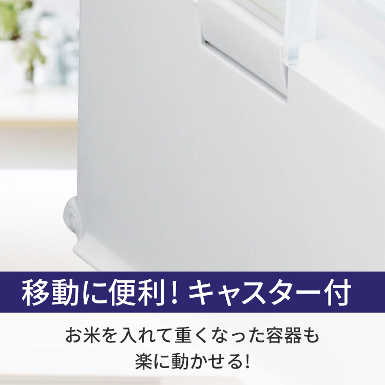 無洗米対応、分解丸洗いOK。残量が分かりやすい透明容器、移動に便利なキャスターも付きなど便利機能もりだくさんのライスストッカーです。