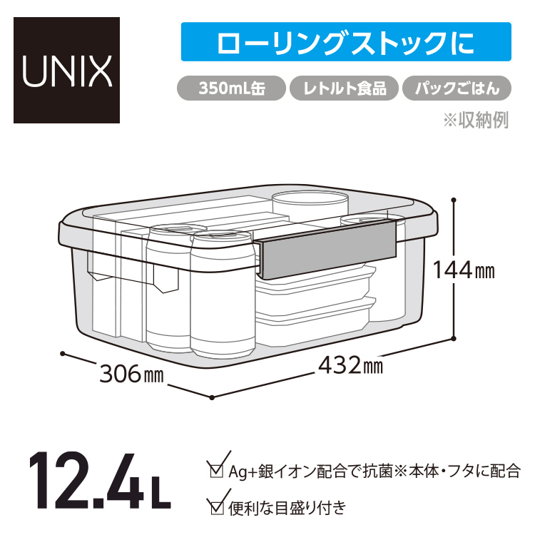 かさばる食品もしっかり収納できます!本体フタにAG抗菌配合、便利な目盛りつき。