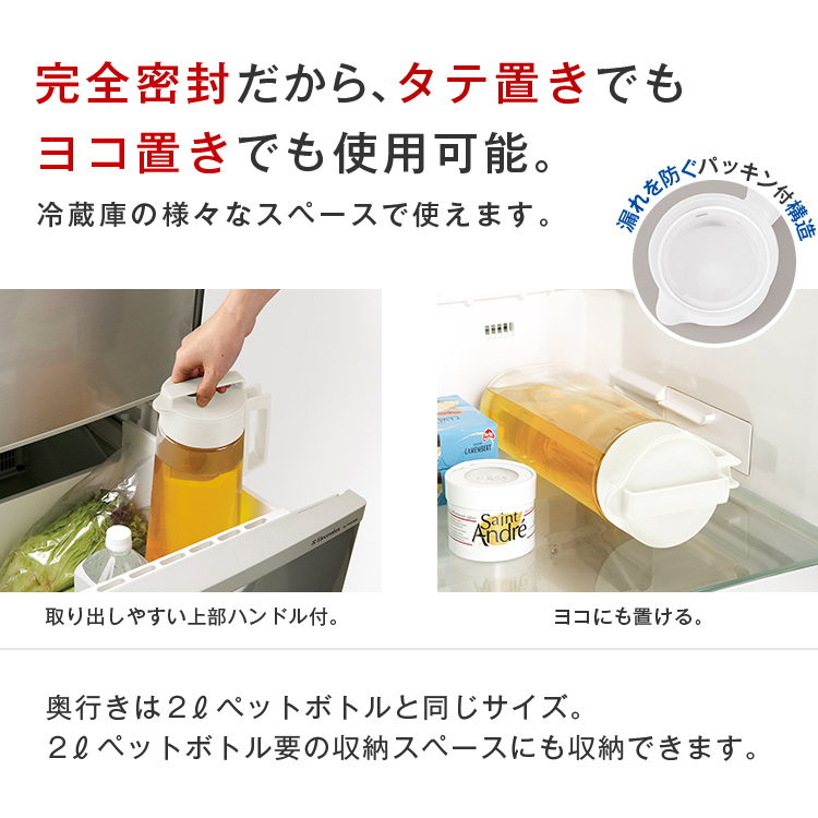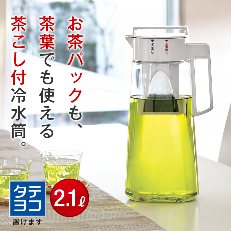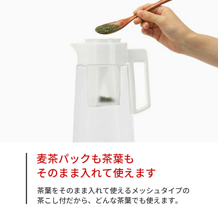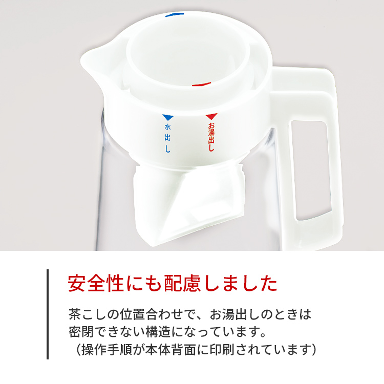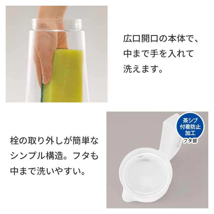 - 本体=AS樹脂、フタ・ネジ栓・茶こし本体=PP、パッキン=シリコーンゴム、茶こしフィルター=PET