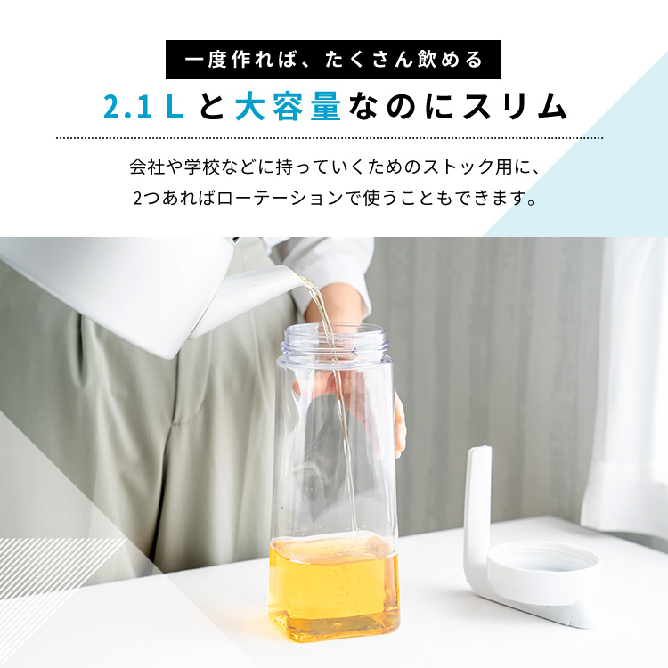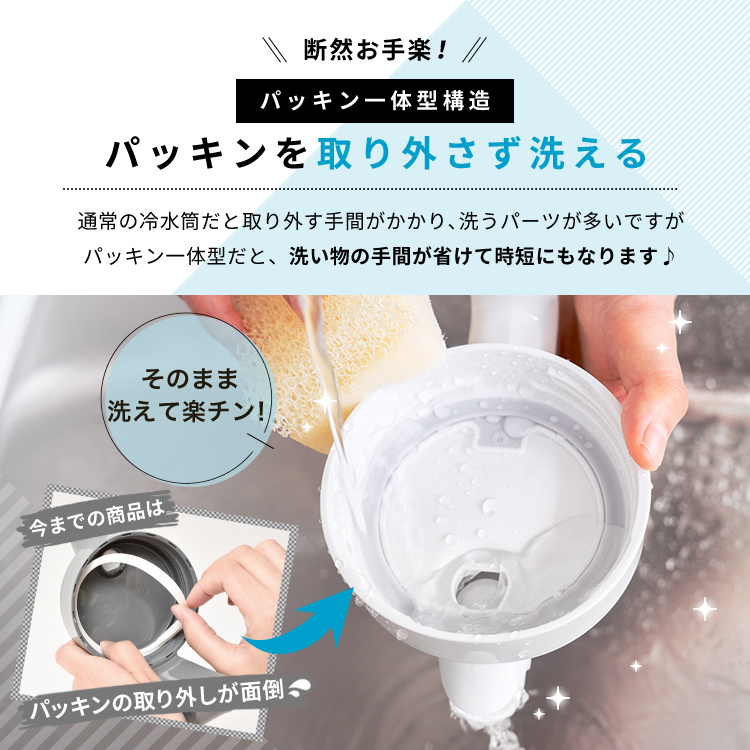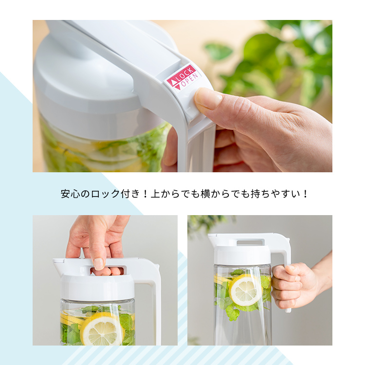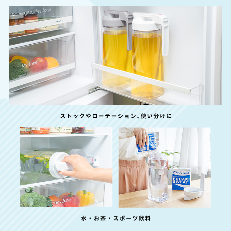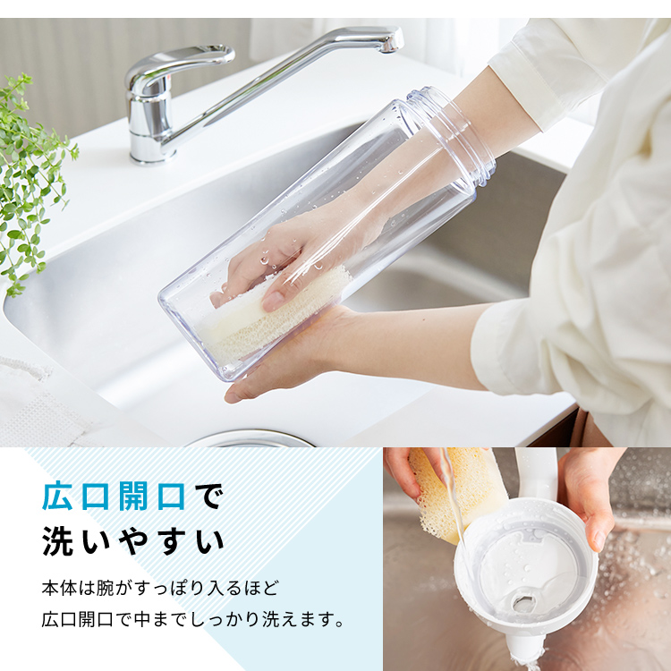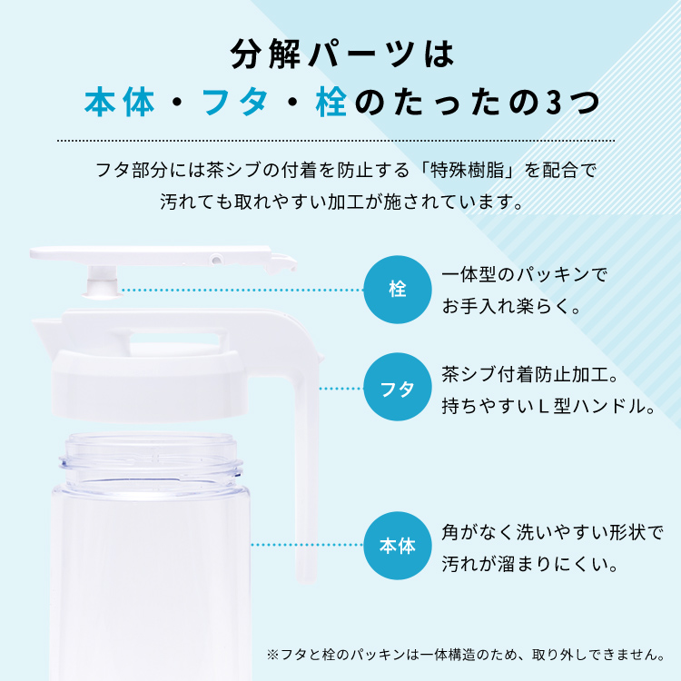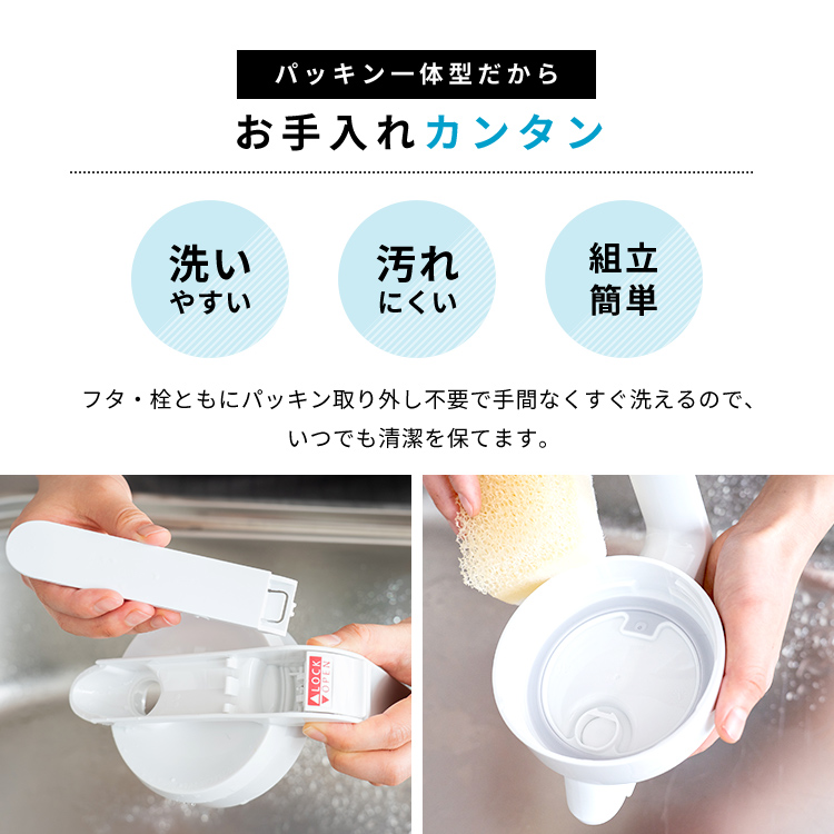 - 本体=AS樹脂、止め具=ABS樹脂、フタ=PP/熱可塑性エラストマー、栓=ABS樹脂/シリコーンゴム