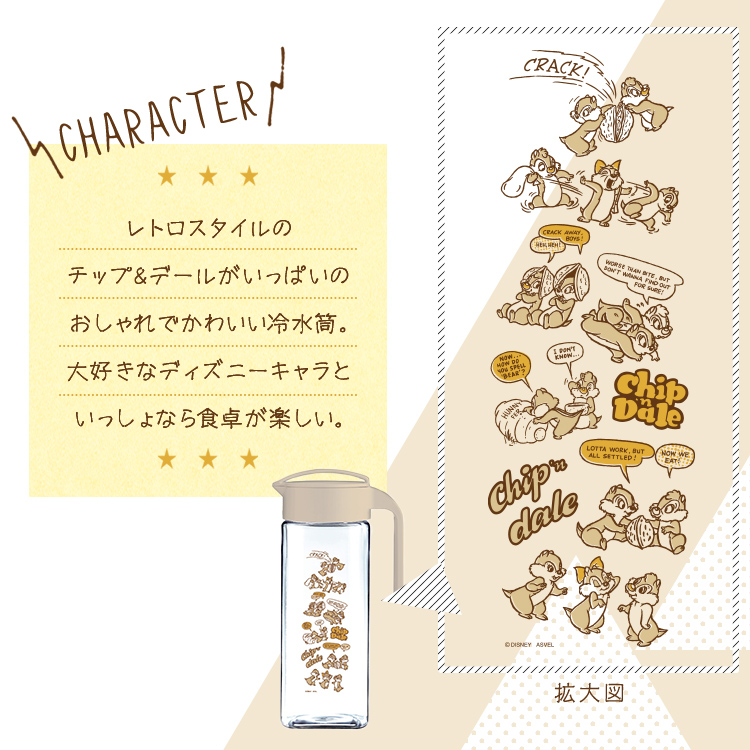 大人気キャラチップ&デール柄のピッチャーです。たっぷり入る2L容量。