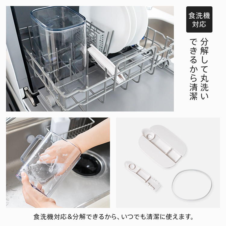- 本体=AS樹脂、フタ・栓=ポリプロピレン、フタパッキン=シリコーンゴム